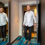 Værelset var lydløst og lydløse, og hotellets beliggenhed var praktisk. Personalet var hjælpsomt, vi havde en lækker morgenmad. Udsigten var fantastisk, servicen var god Og der var et hurtig internet...